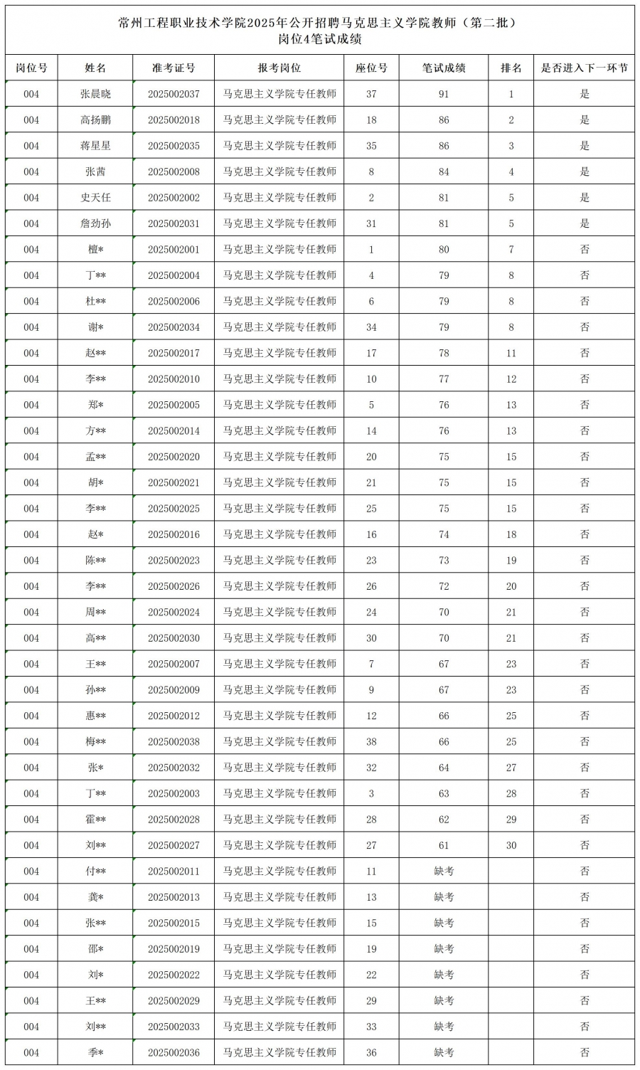 常州工程职业技术学院2025年公开招聘马克思主义学院教师(第二批)笔试成绩通知